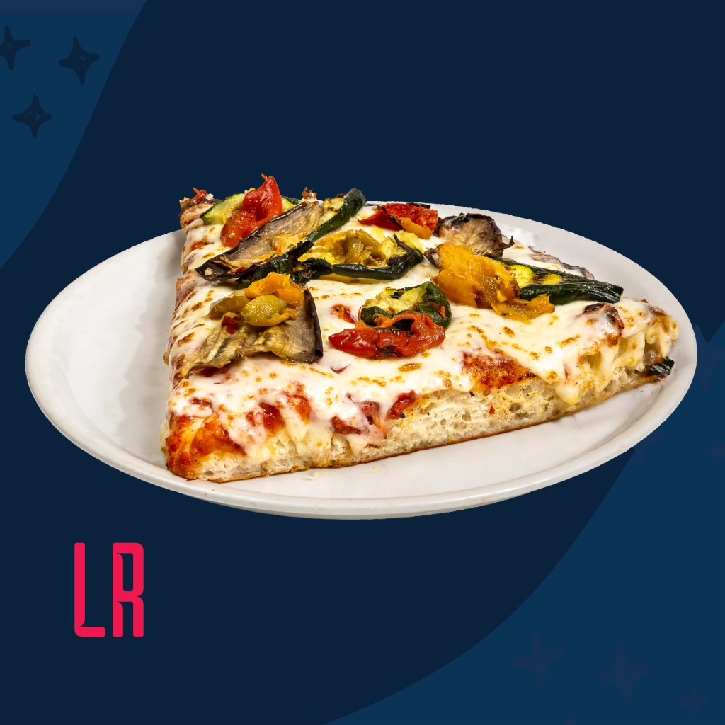 Pomodoro, mozzarella, peperoni, zucchine e melanzane grigliate.